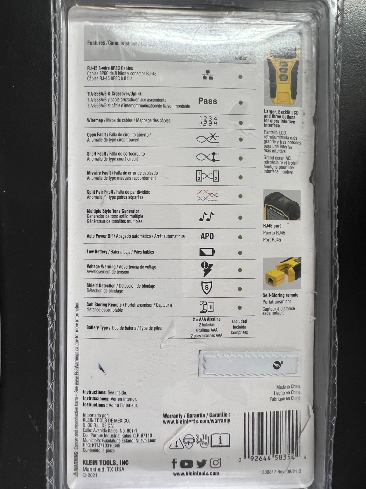 Klein Tools LAN Scout Jr. 2 Data Cable Tester VDV526-200 3544/OB