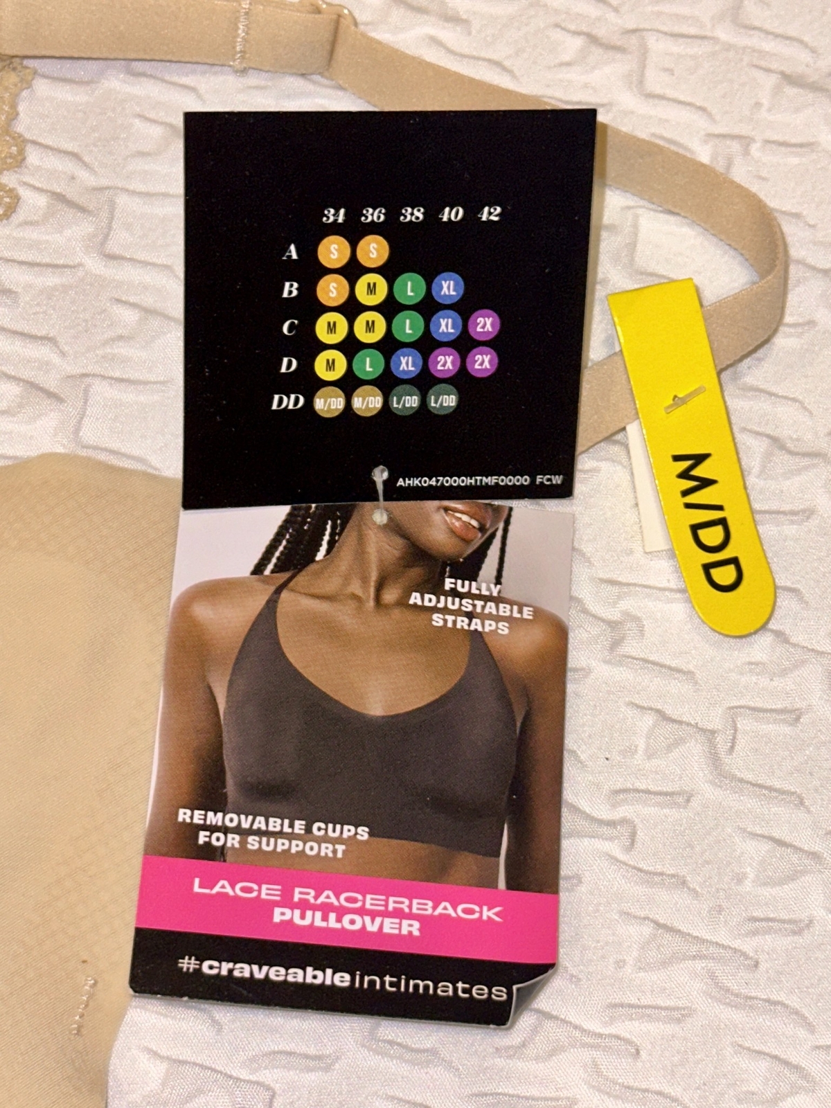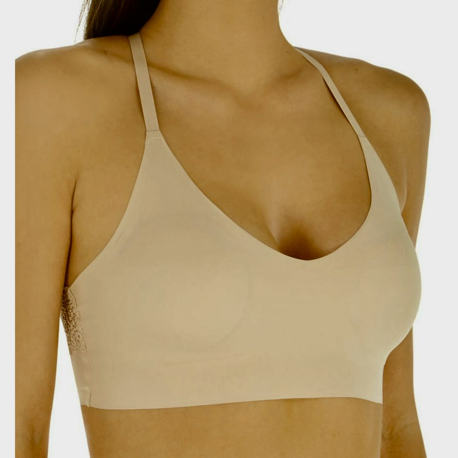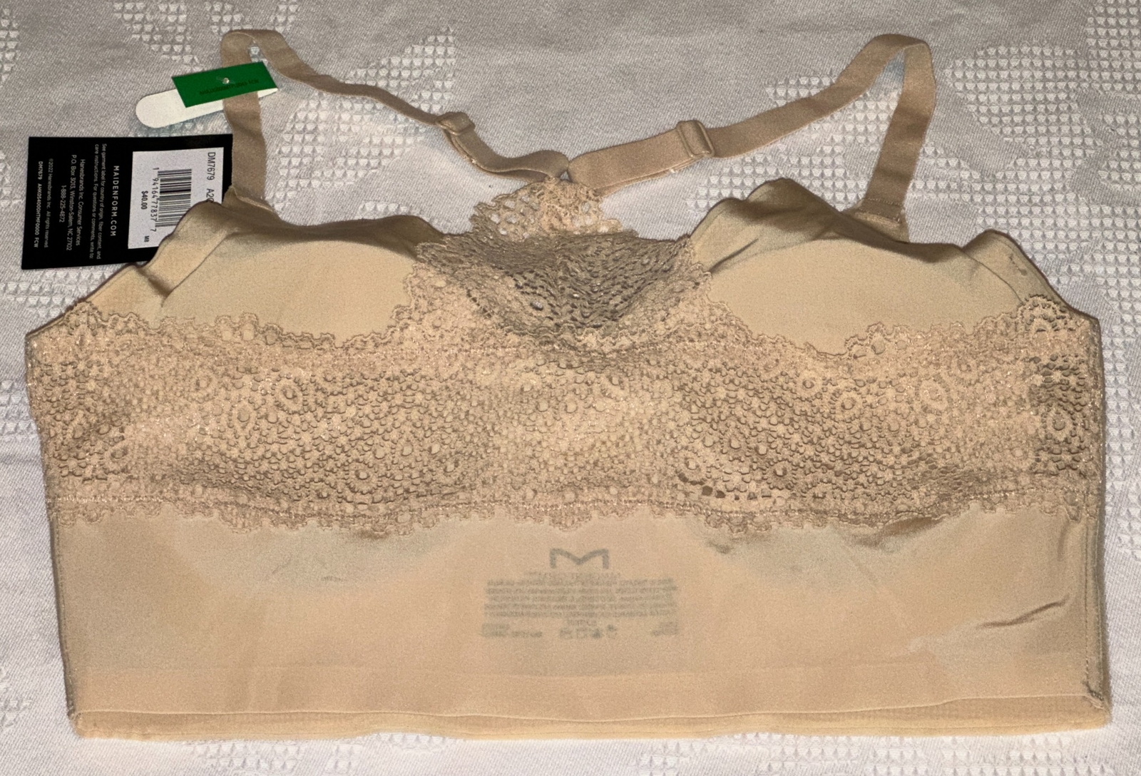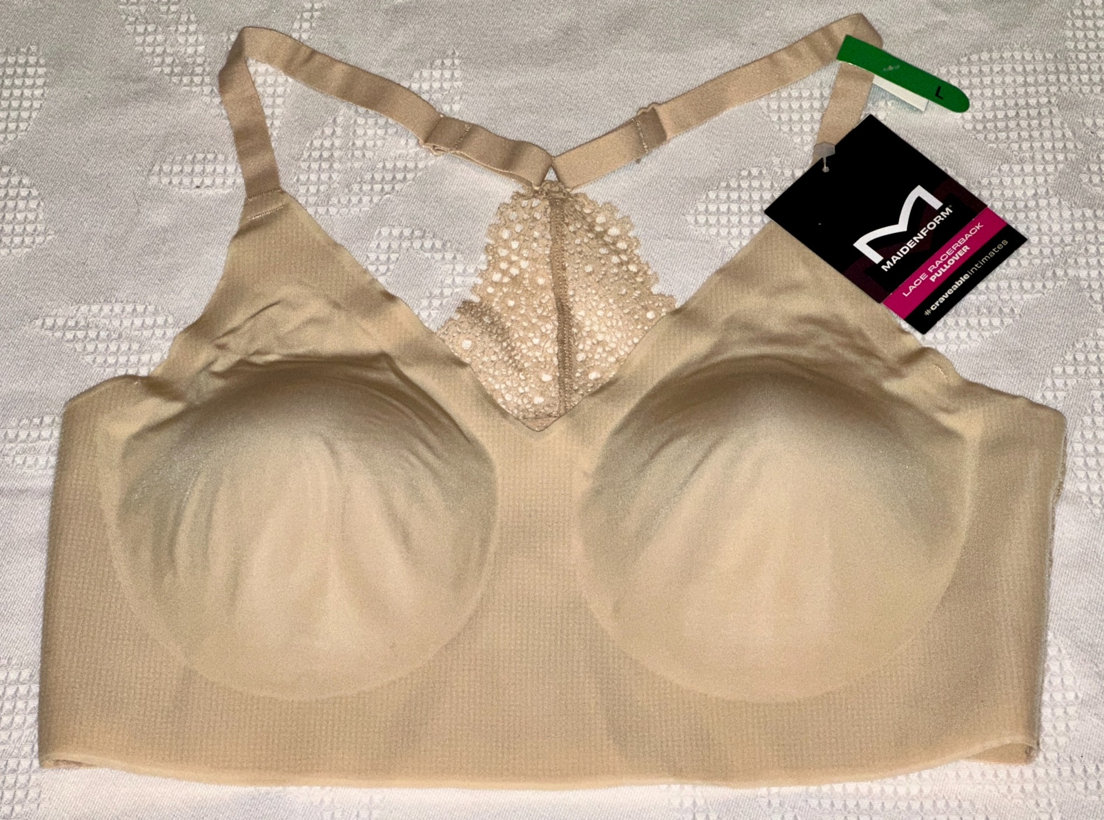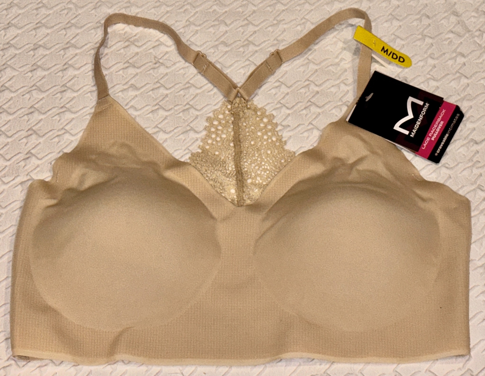 MAIDENFORM Pure Comfort Lace Racerback Nude Wireless Bralette Bra Womens M DD L