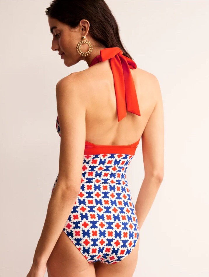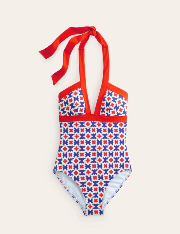 NWT Boden Women's Ithaca Halter Swimsuit Surf the Web Abstract Tile Sz US 12 Reg